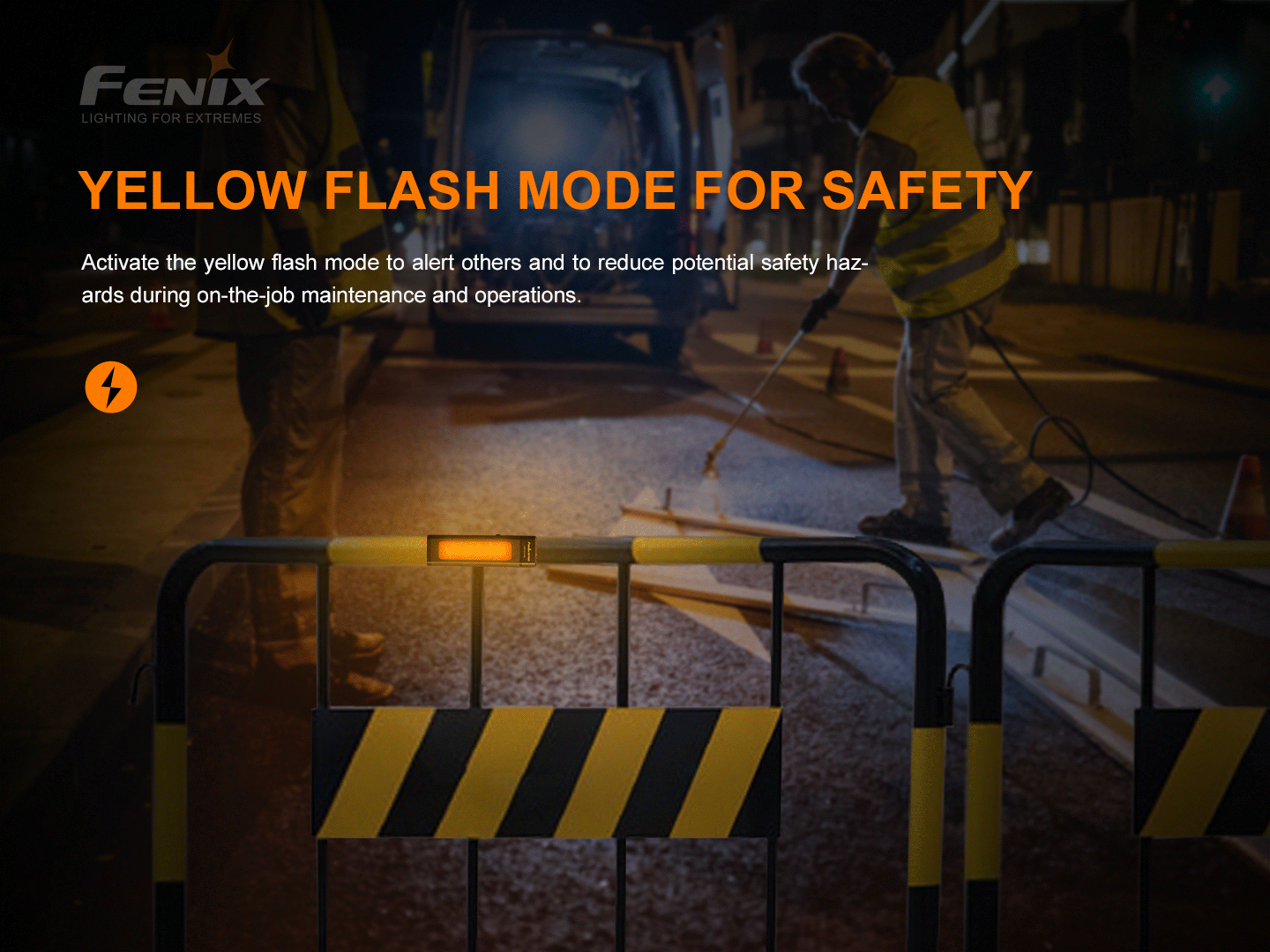 - Flutlichtmodus (2 Helligkeitsstufen, gelbes Warnlicht)