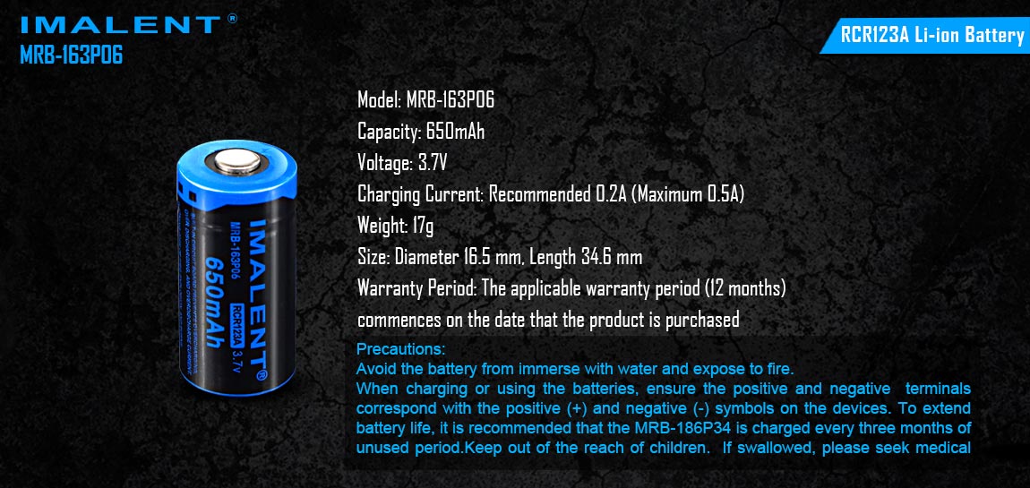 Imalent MRB-163P06 - Typ "16340" / RCR123A - Akku (Lagerbestand = letzte verfügbare Stk.)