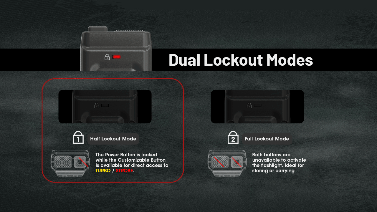 Dem Nutzer stehen zwei Lock-Out Modi zur Verfügung, so ist ein unbeabsichtigtes Einschalten ausgeschlossen.